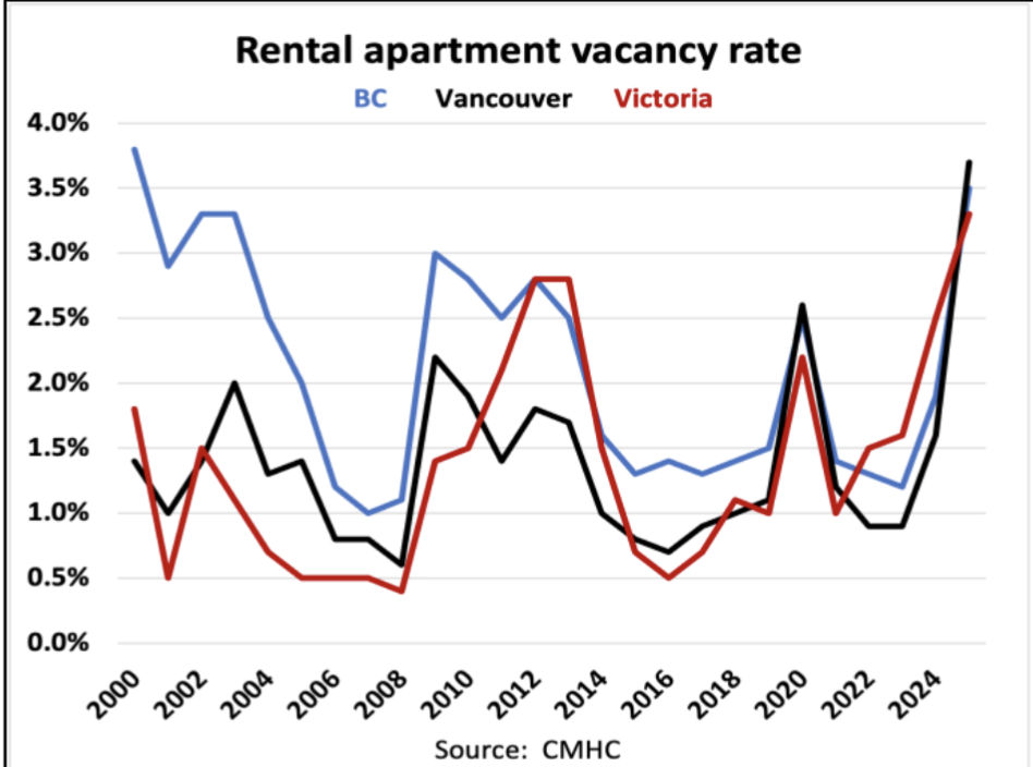 Due to all the pre-sales we saw take place over the last year, we have seen rental prices fall and vacancy rates increase. I anticipate that will remain the case going into 2026. Our investors who purchased at the peak when rates were low want to sell as the numbers, when factoring in today’s interest rates, strata fees, taxes and the BC tenancy rules.