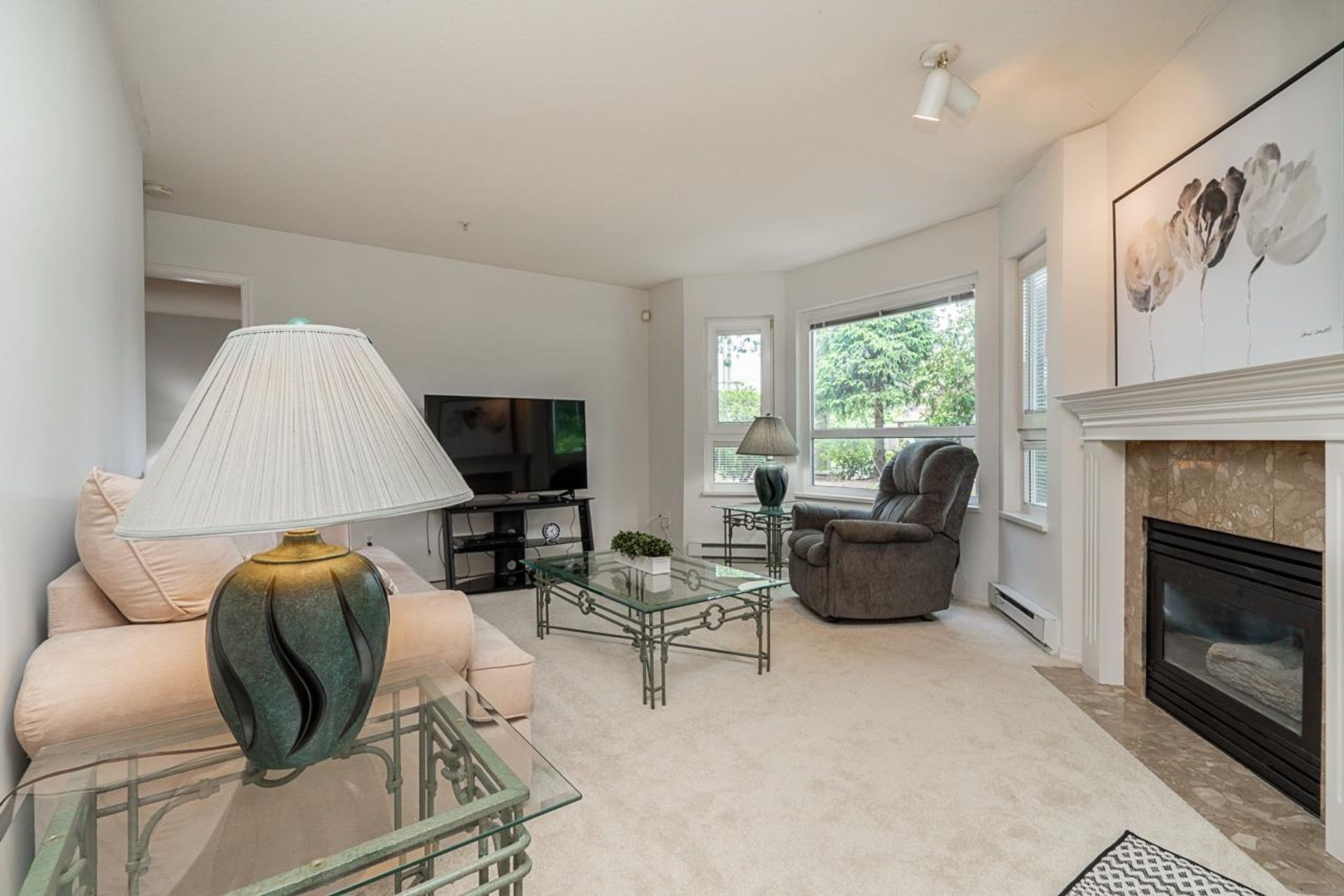 Welcome to The Stetson! This clean, bright, and well-maintained 2 bed, 2 bath condo offers nearly 1,200 sq. ft. of spacious living with fresh paint throughout. Both bedrooms are generously sized and set on opposite sides of the home, including a primary with walk-in closet and ensuite. The living/dining area features a cozy gas fireplace—gas is included in your strata fee! Enjoy a large 192 sq. ft. walkout patio, perfect for relaxing or entertaining. The building was rain screened around 2007 and has a well-run strata. You’ll also love the full-size laundry room with added storage and the welcoming, oversized entryway. Includes 2 parking stalls and a storage locker. Incredible value!