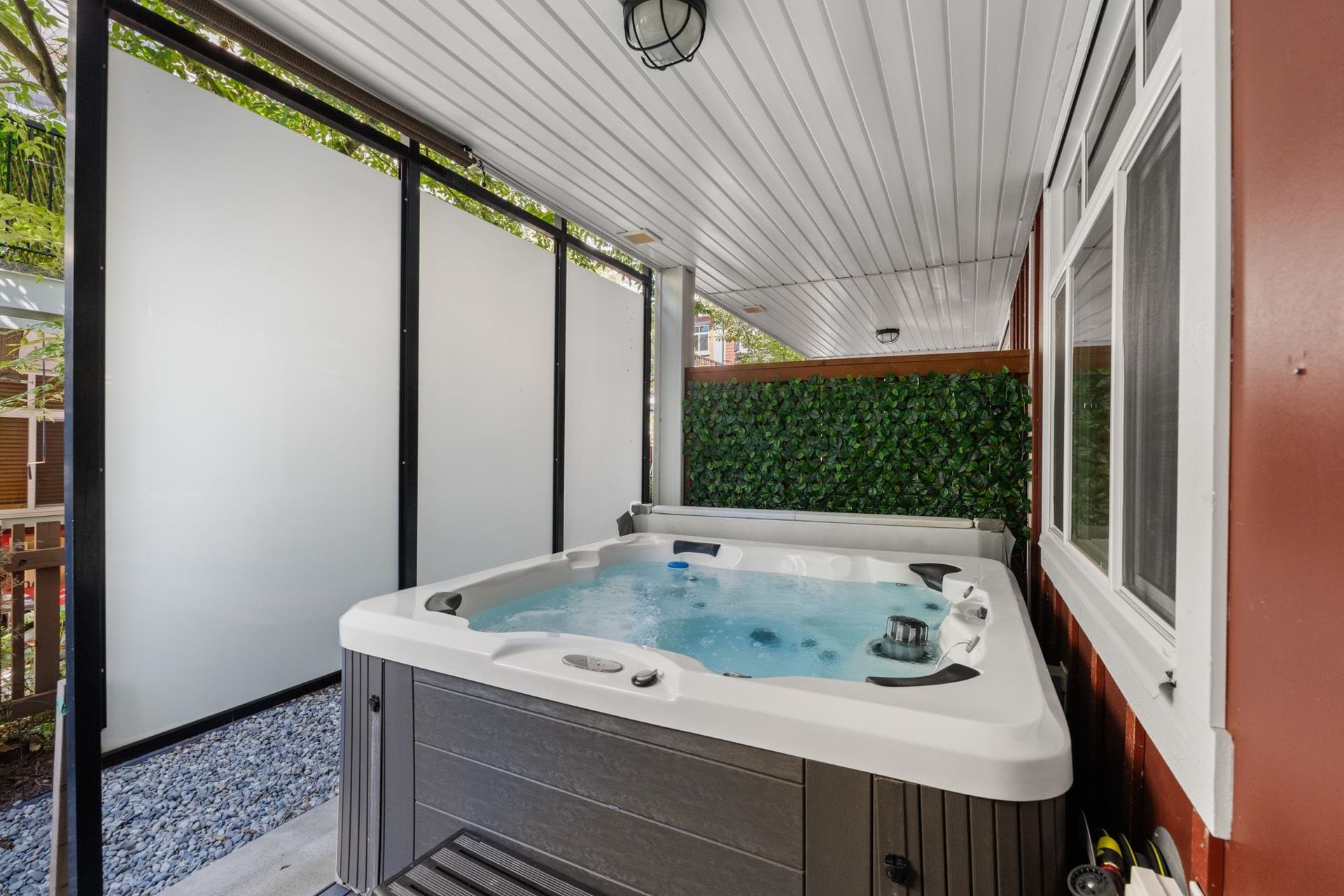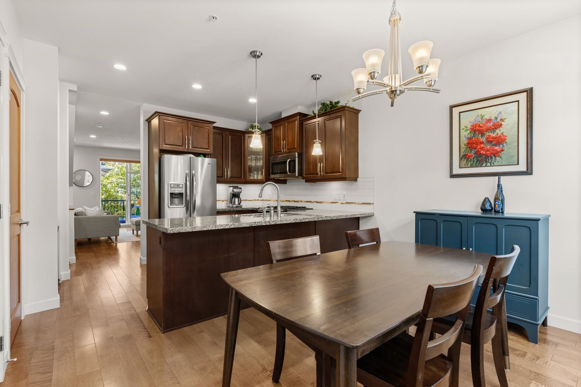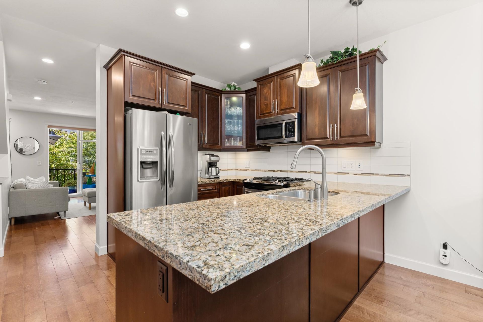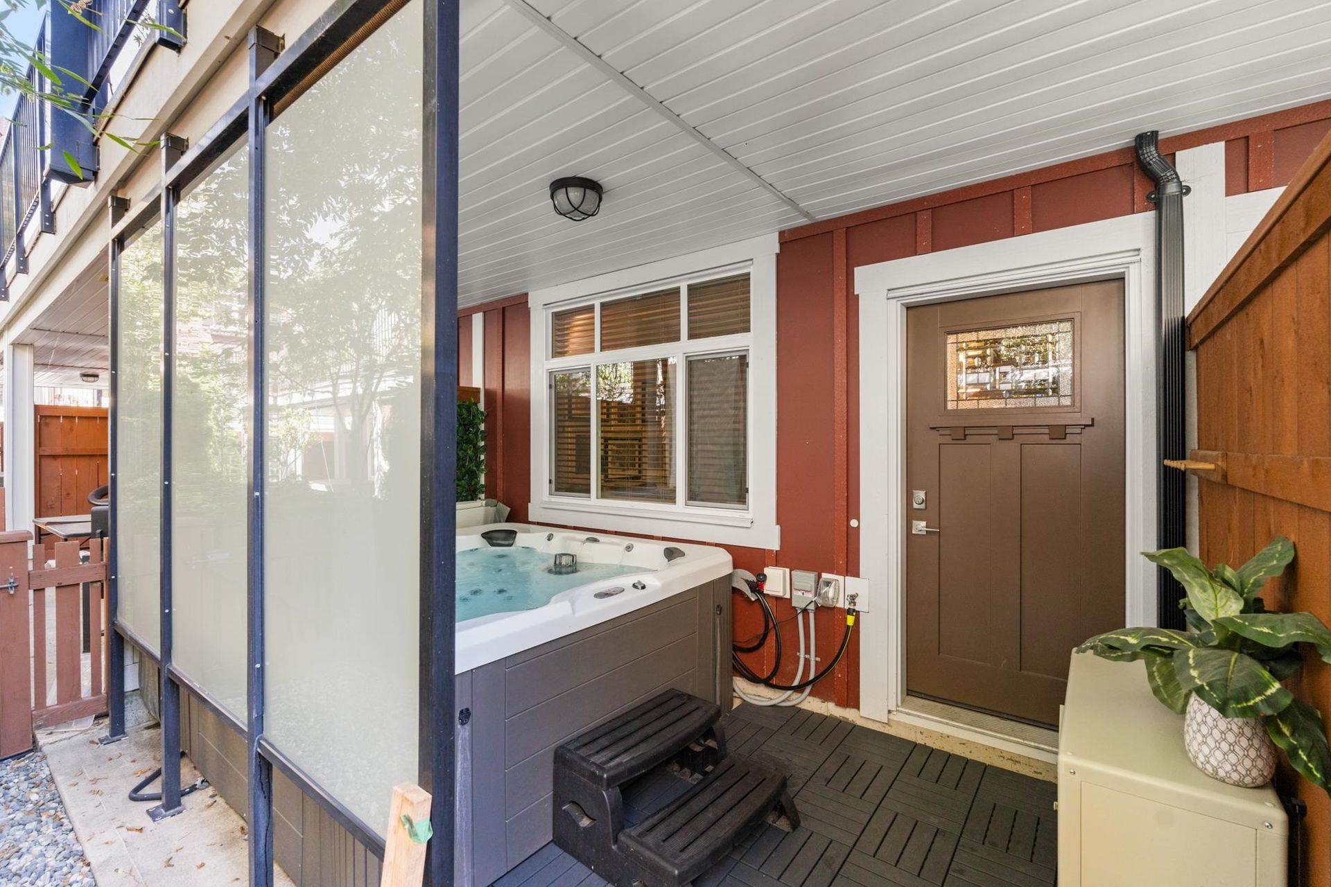 Welcome to the highly sought-after Yorkson Creek South complex in the heart of Willoughby! Parking for 3 cars, epoxy garage and HOT TUB out back!! This home features luxury high-end finishings including granite counters in bathrooms & kitchen, organizers in all the closets, solid wood soft-close cabinets, gas stove, high-end hardwood flooring, Pantry + powder on the main level. Upstairs primary has vaulted ceilings, A/C unit, walk-in closet, ensuite with heated floors, fog-free mirror, and a rain shower, two additional generous-sized bedrooms + full bath & your own laundry room. Downstairs bedroom has its own separate entrance + full ensuite with shower! Walk to Schools, Shopping, close to Hwy 1 and Carvolth Park & Ride. Perfect for the family!