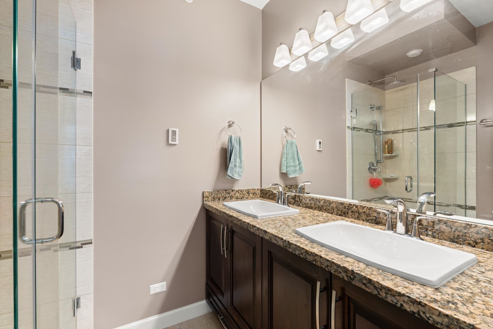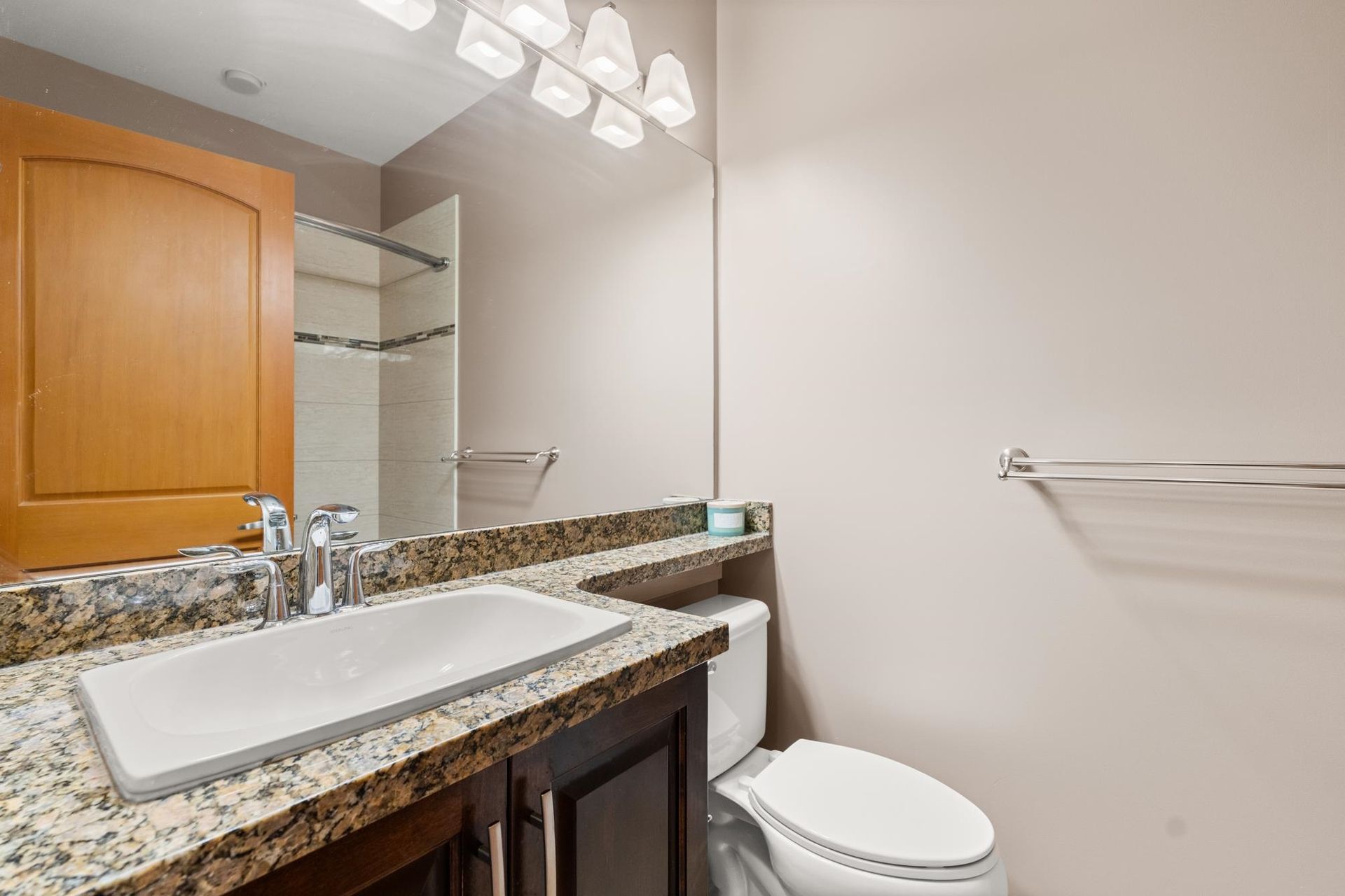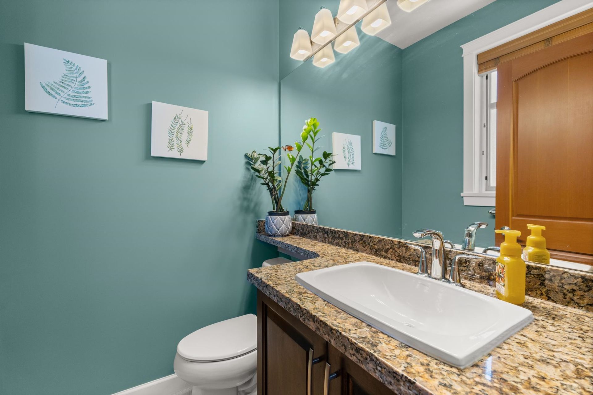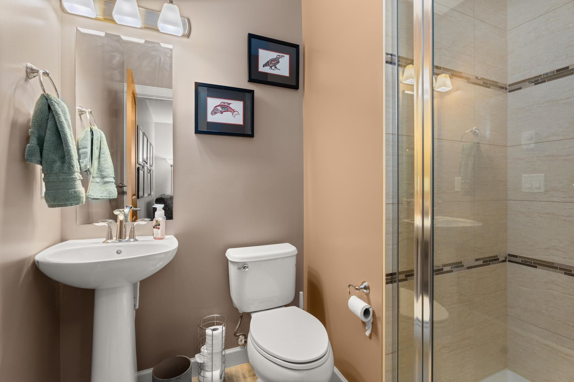 Welcome to the highly sought-after Yorkson Creek South complex in the heart of Willoughby! Parking for 3 cars, epoxy garage and HOT TUB out back!! This home features luxury high-end finishings including granite counters in bathrooms & kitchen, organizers in all the closets, solid wood soft-close cabinets, gas stove, high-end hardwood flooring, Pantry + powder on the main level. Upstairs primary has vaulted ceilings, A/C unit, walk-in closet, ensuite with heated floors, fog-free mirror, and a rain shower, two additional generous-sized bedrooms + full bath & your own laundry room. Downstairs bedroom has its own separate entrance + full ensuite with shower! Walk to Schools, Shopping, close to Hwy 1 and Carvolth Park & Ride. Perfect for the family!