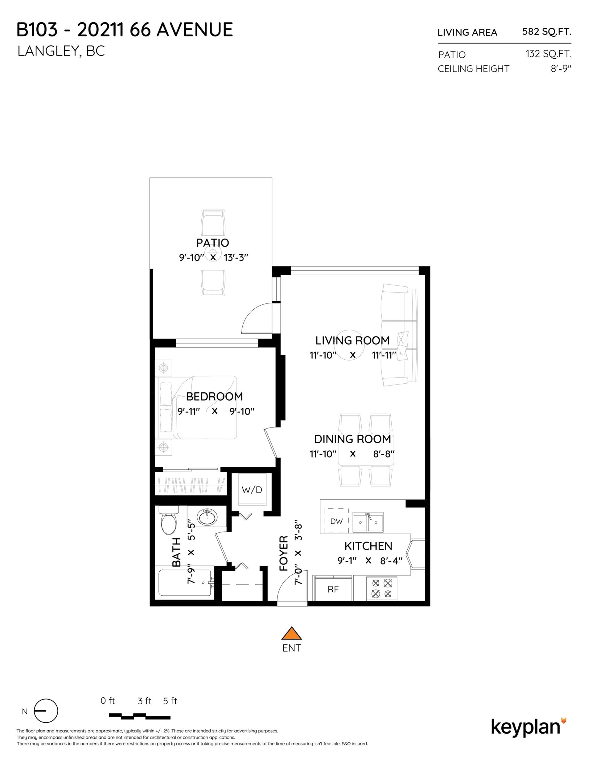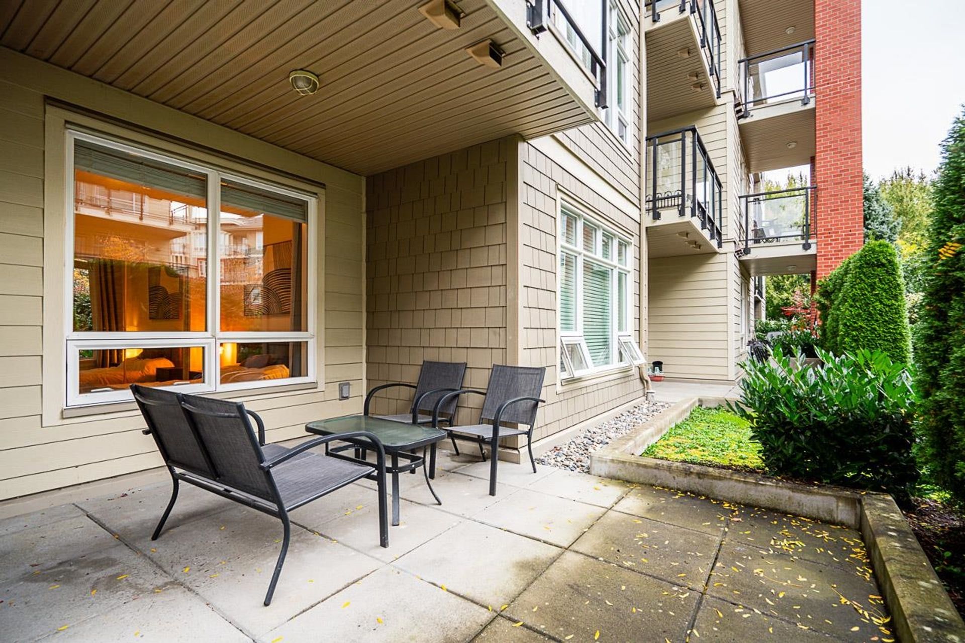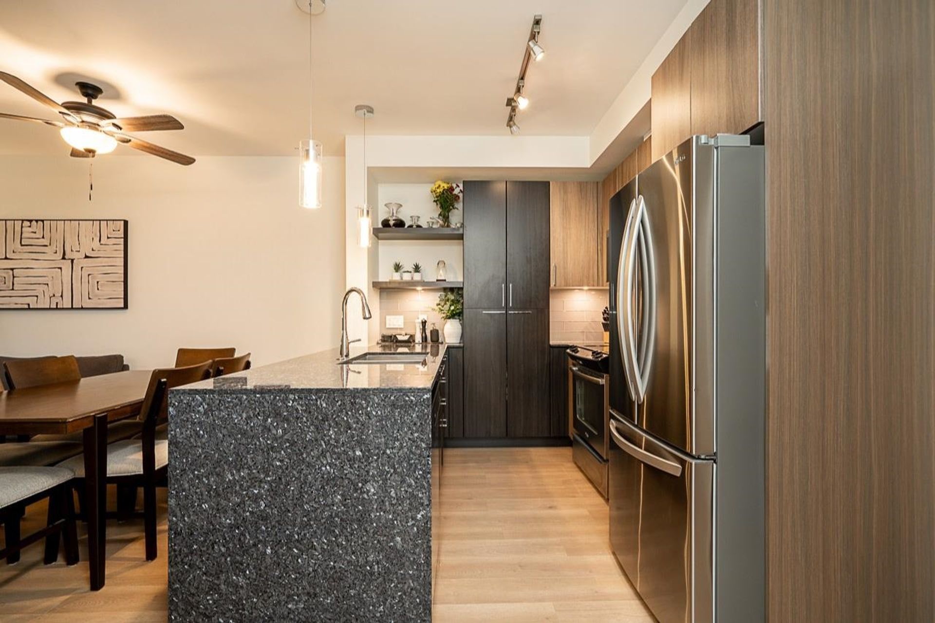 Welcome to this BRIGHT GROUND-FLOOR 1-bed condo at Elements. Located close to the amenity center and only one neighbour! B103 is private, featuring a walk-out patio, ideal for downsizers, first-time buyers & pet owners. Inside offers updated floors, new paint and a modern kitchen with stainless steel appliances, and a quartz bar counter that opens to the living room. You'll find white oak laminate flooring throughout, with porcelain tile in the bathroom, quartz counters and soaker tub. There's also a storage locker, 1 parking spot, and EV CHARGING STATION, and great amenities at The Trilogy Club, including fitness center, theatre, kids room, party room and guest suites. Pet-friendly (no size restrictions) and WALKABLE LOCATION to Walmart, London Drugs, BestBuy, Save-on Foods,