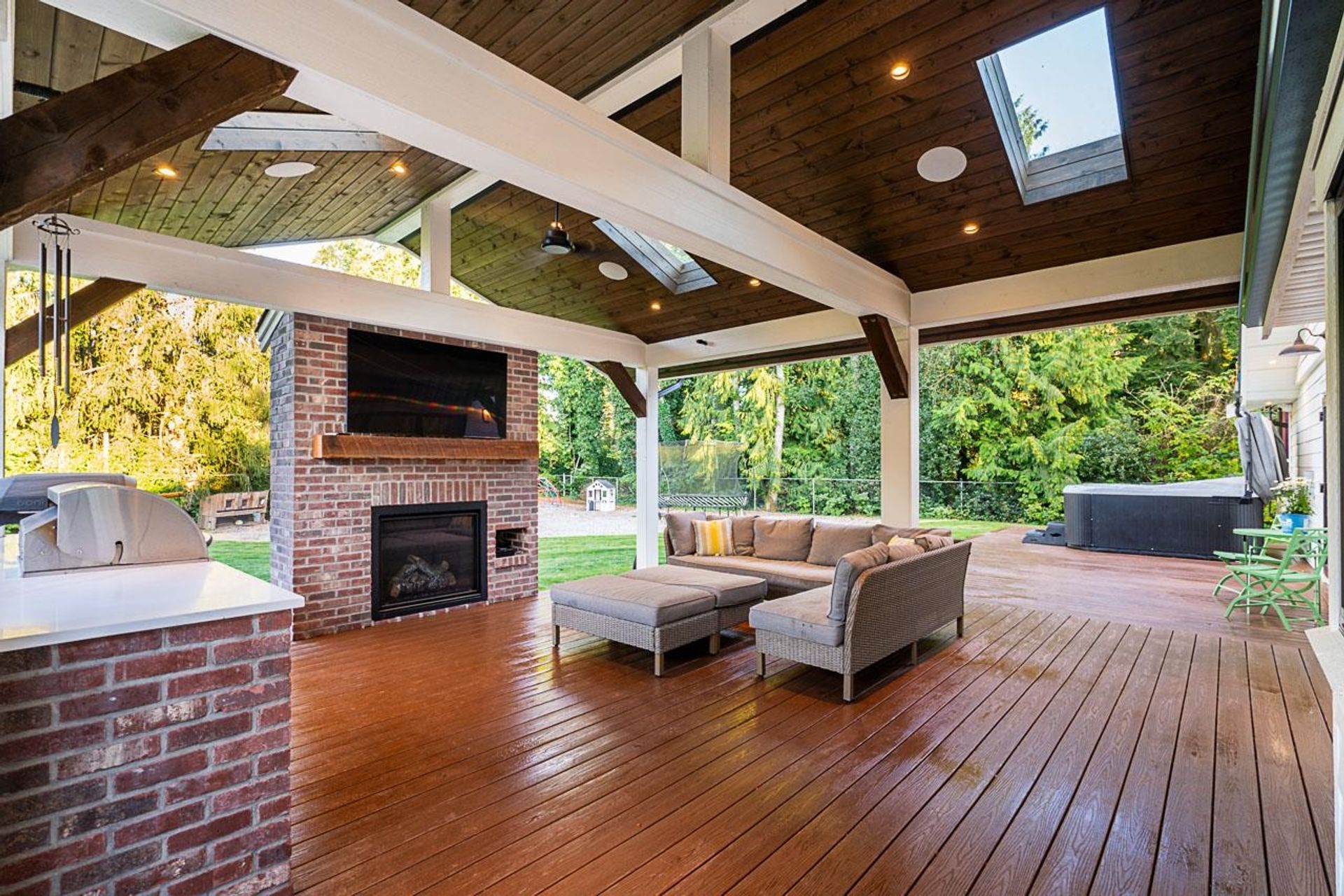 One of the best and most tranquil locations in Langley! This completely remodelled rancher offers future in-law suite potential and just under 3700 sq ft dream shop, each with its own 200-amp service. Inside, discover a chef’s kitchen with high-end appliances and European cabinetry accented by Scandinavian undertones, plus a luxurious ensuite finished with Italian stucco. Step outside to a custom timber outdoor living space with hot tub and spacious yard—perfect for entertaining. An RV hookup with sani-dump is included. Ideally located in a top school catchment, minutes from local farms, wineries, and Langley's best specialty spots. With quick freeway access and close to the hospital, this private compound blends lifestyle, comfort, and function.