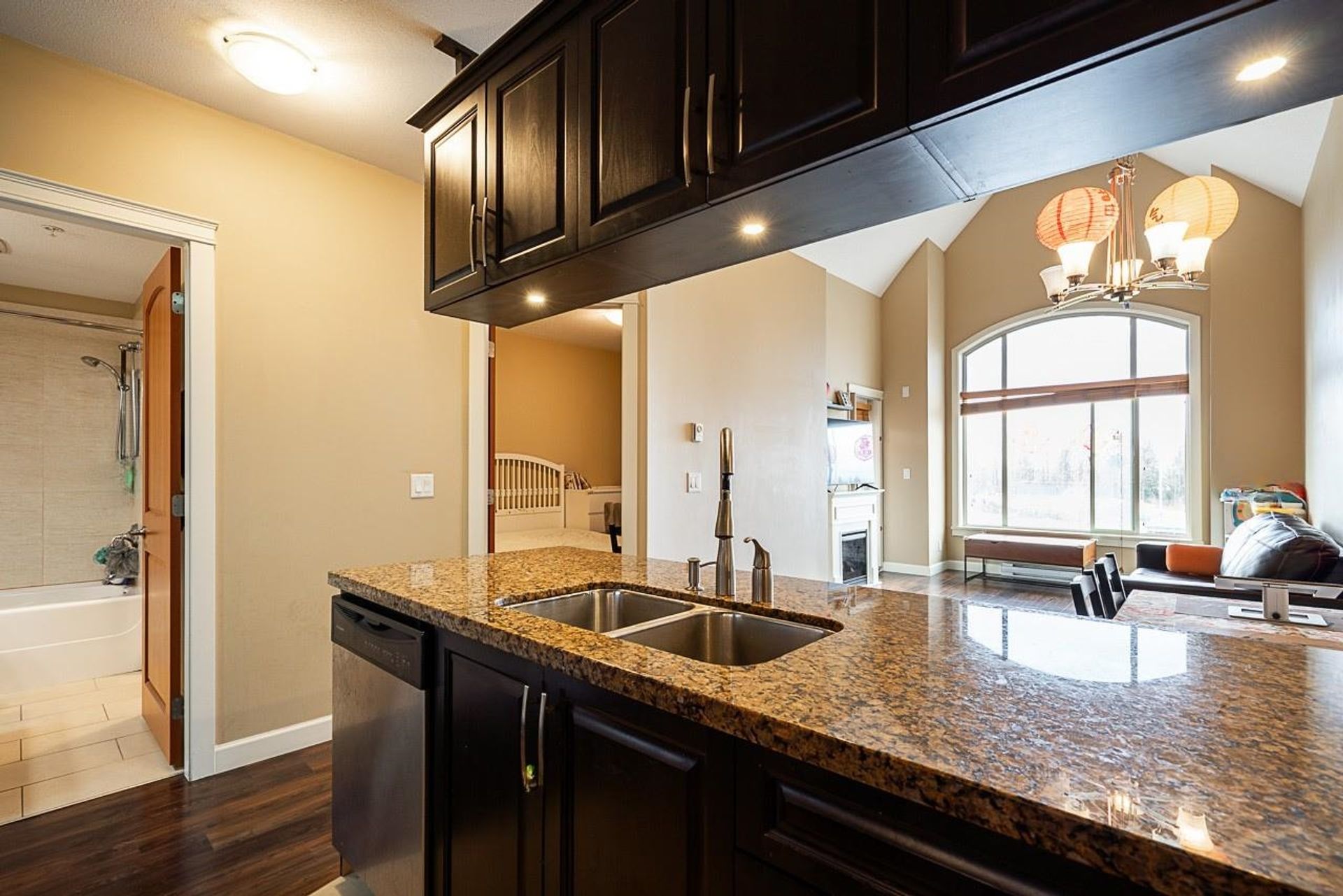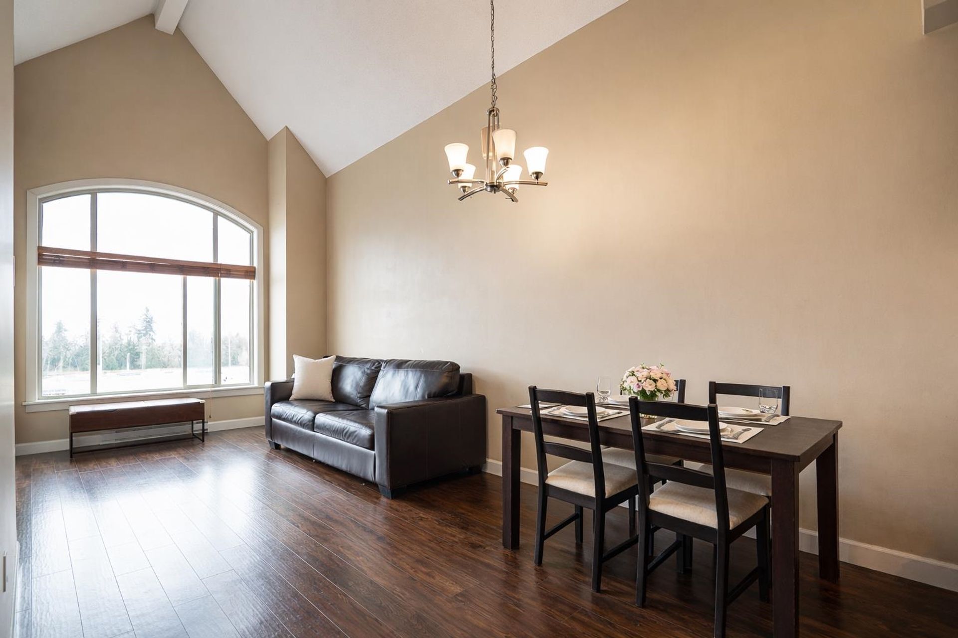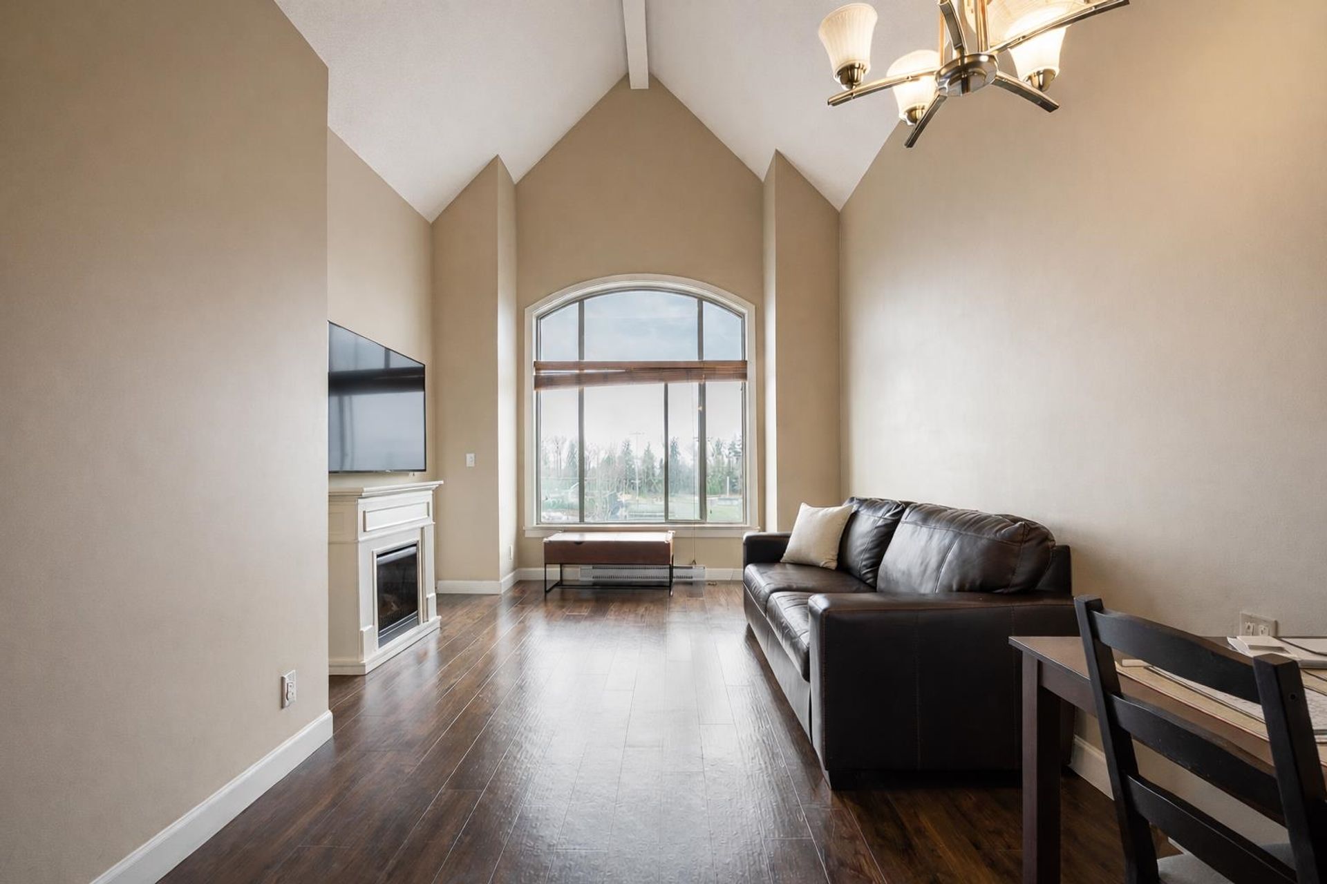Penthouse-style living at sought-after Yorkson Creek in the heart of Willoughby! This 1 bedroom offers a peaceful west-facing balcony overlooking the park and baseball diamond. Vaulted ceilings elevate the space, while maple plank flooring, granite counters, stainless steel appliances, high-end cabinetry, heated bathroom floors, and A/C add everyday comfort. The primary features a walk-through closet to a spa-inspired 4-piece ensuite. 2 (!) parking stalls + powered, roll up storage locker with EV potential. 2 Pets allowed, no size restrictions and rentals allowed.