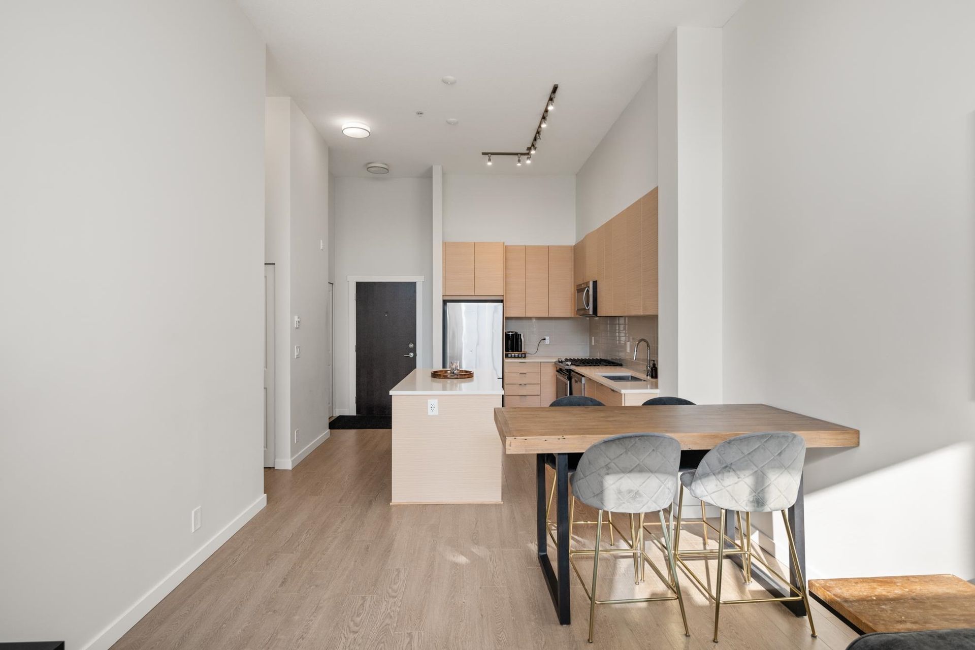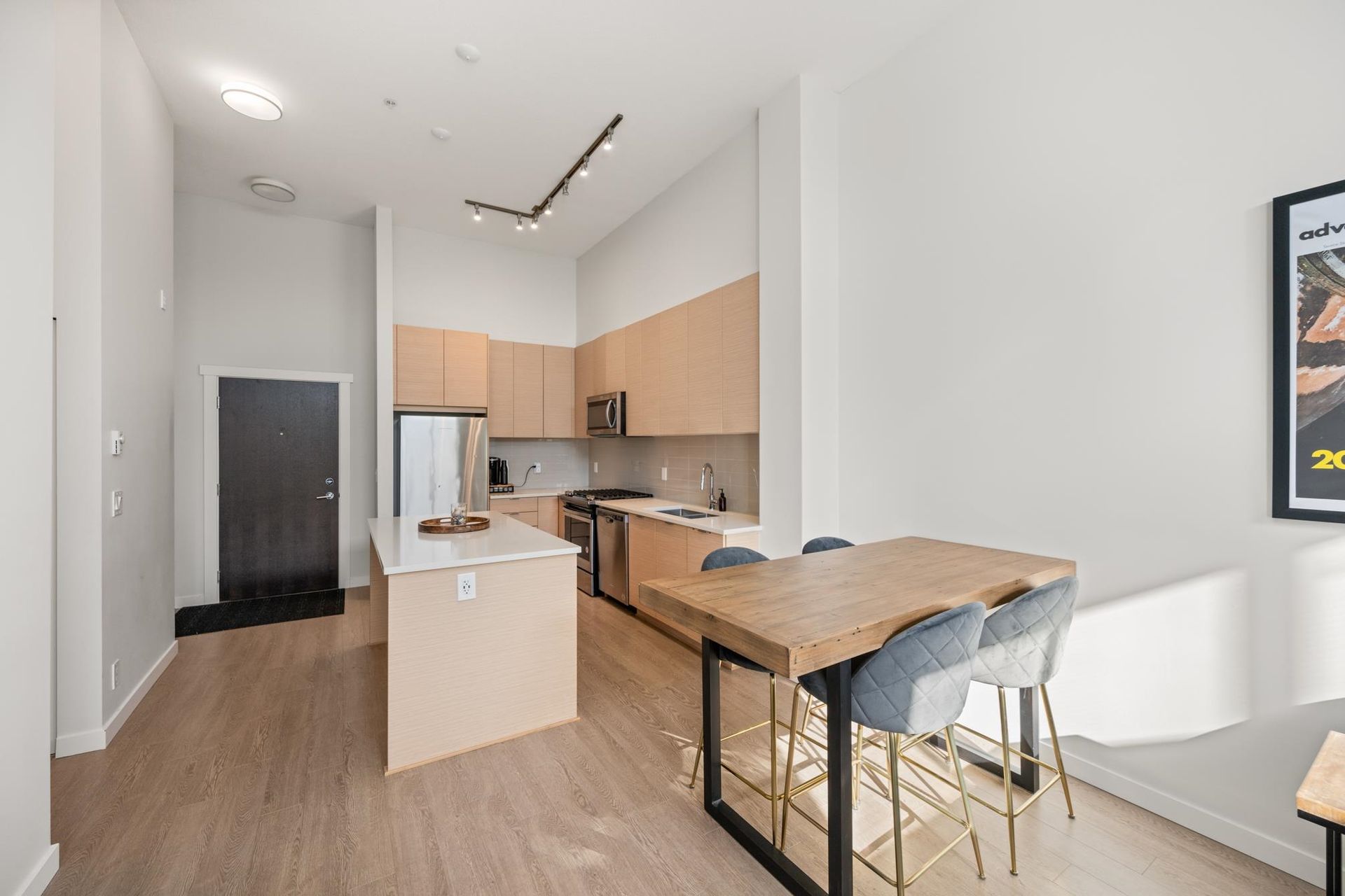 Welcome to this stunning top-floor condo in Union Park! This 2-bedroom, 2-bath suite offers 12ft ceilings, abundant natural light, & breathtaking mountain views. Built by Polygon Homes, it features a gourmet kitchen w/quartz countertops, a large island, & a gas range—perfect for entertaining. Enjoy the spacious balcony w/ mountain views, 2 side-by-side parking stalls, & storage locker. EV chargers are available in the parkade. Union Park offers incredible amenities in their 12,000sqft facility with an outdoor pool, hot tub, basketball courts, music room, lounges, and more. Conveniently located near Willoughby Town Centre, parks, schools, and the Carvolth Exchange Centre. Location can't be beat! 2 pets allowed.