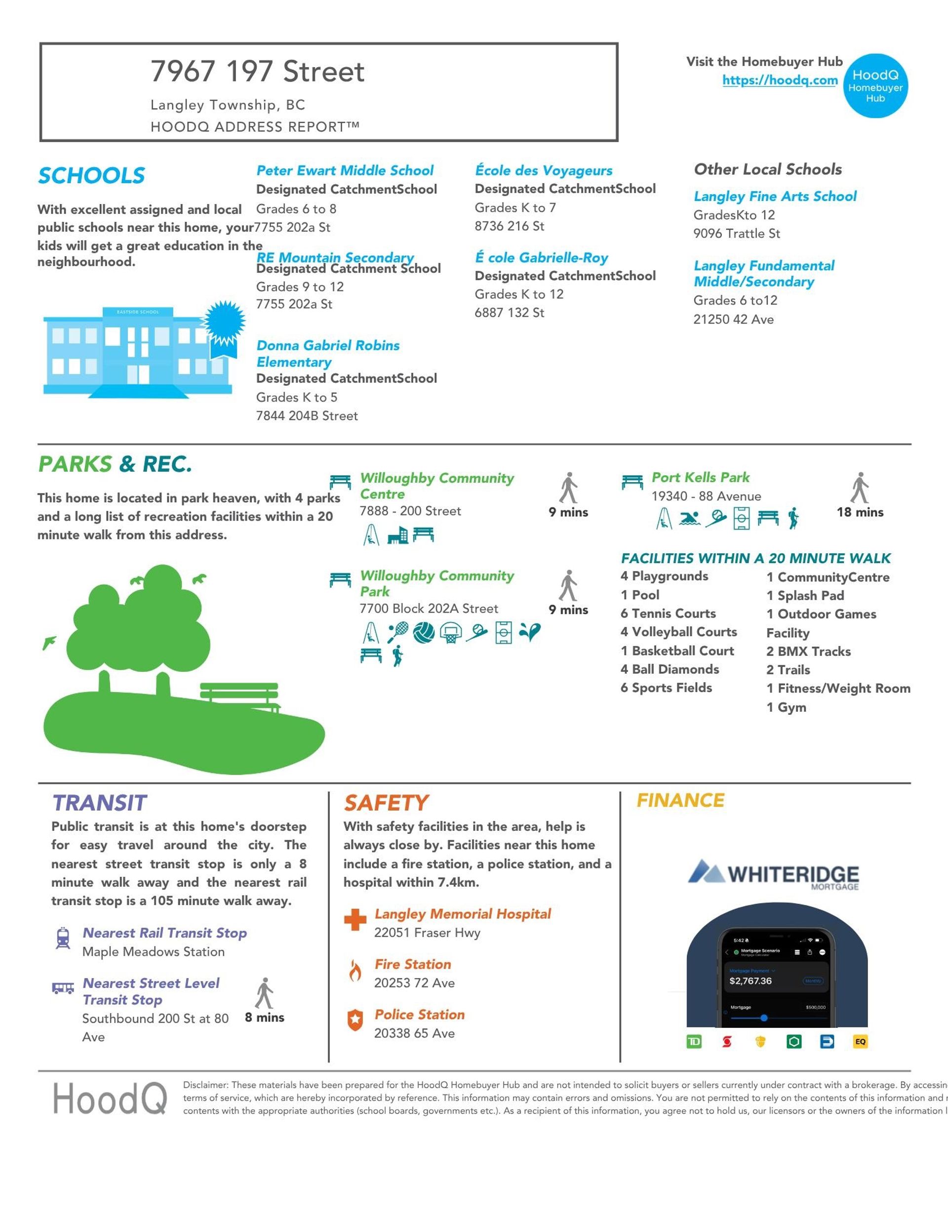 Here is a brief summary of some amenities close to this listing (98 - 7967 197 Street, Willoughby Heights, Langley), such as schools, parks & recreation centres and public transit.